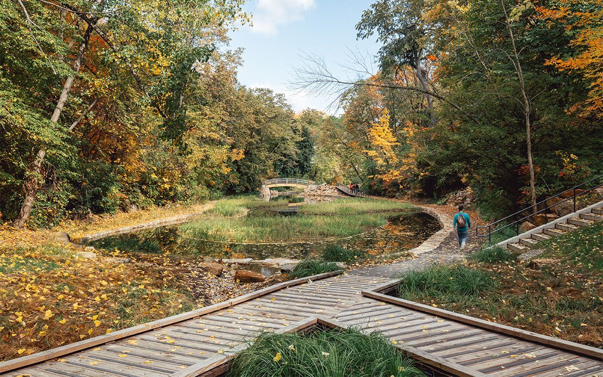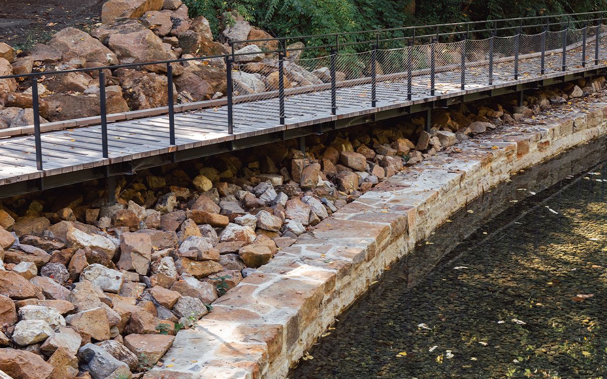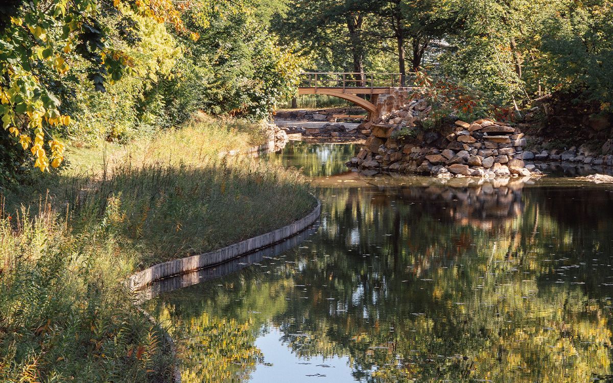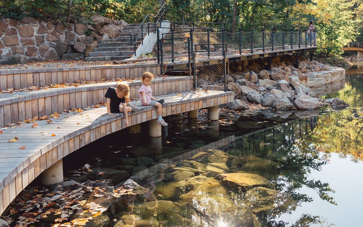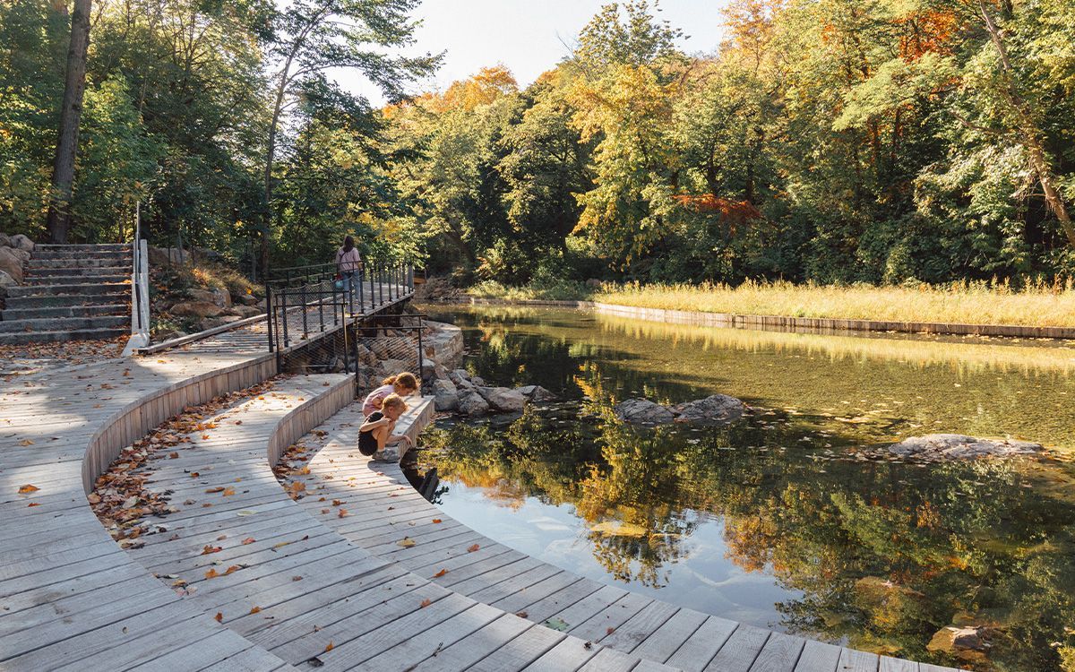 Heritage restoration of the Grande Poudrière ponds located in the military cradle of Île Sainte-Hélène. A witness to the territory's evolution, this water feature presents a stratified ensemble exposing the different construction phases that contributed to the formation of its current identity. In keeping with the conservation development orientations of the park's master plan, the project integrates all the functional and technical requirements of the program developed. It improves water quality and reduces water consumption by integrating an eco-responsible management system and practices. In addition, the project enhances native vegetation, both terrestrial and aquatic, to enrich the landscape experience. The conservation strategy aims to strike a balance between the enhancement of built and natural heritage. The design diversifies the area's uses by promoting accessibility and inclusion, while rehabilitating the site's amenities, equipment and furnishings.