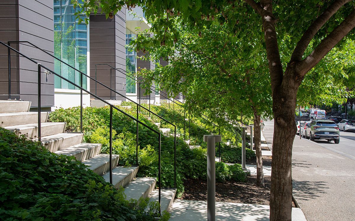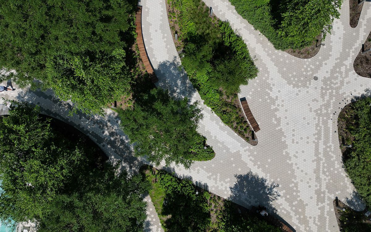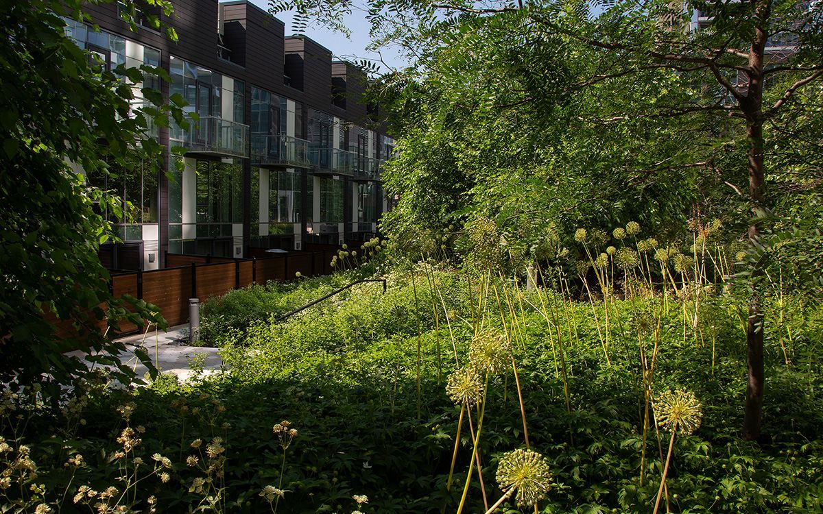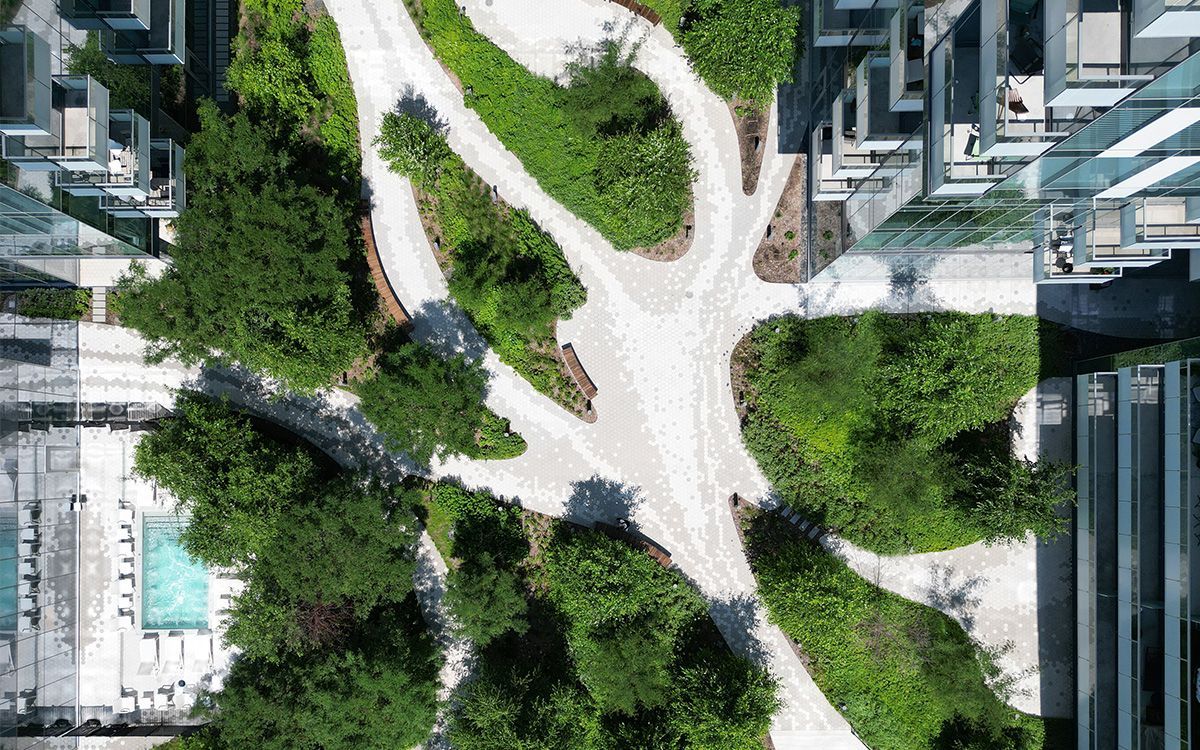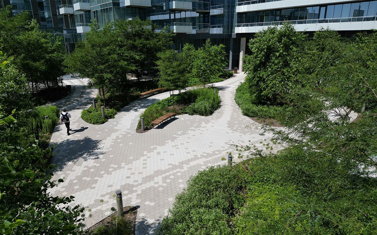 Conception d’un jardin dédié aux résidents du complexe d’habitation YUL. Inspiré par les paysages hivernaux sculptés par le vent, le projet se compose de buttes plantées de vivaces florales et d’herbes choisies pour leur blancheur. Ces buttes découpent des sentiers, des places et des espaces privés qui s’apprécient au gré des saisons. L’été, des fontaines de bruine et la canopée des bouleaux offrent un espace rafraîchissant et l’hiver, la fontaine se transforme en anneau de glace qui anime l’ensemble du lieu.